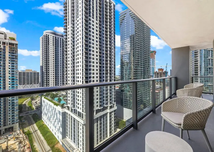 Die Villa City-View Condo W Pool Access & Free Parking Miami liegt im Viertel Downtown Miami, in 5 Fußminuten Entfernung vom One World Trade Center und bietet eine Sauna.